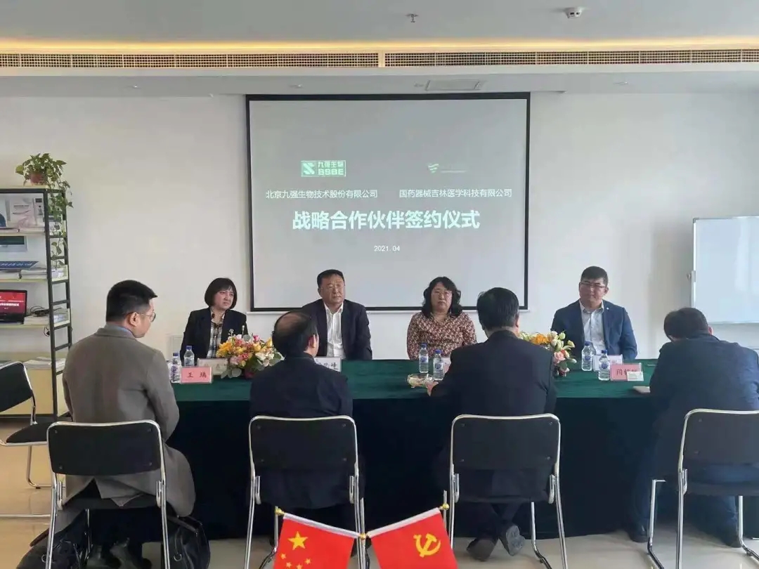 2021年4月22日,九強(qiáng)生物與遼寧自貿(mào)國藥器械簽訂了戰(zhàn)略合作協(xié)議。出席會(huì)議的有:遼寧國藥總經(jīng)理郭曼,大連國藥銷售總監(jiān)韓顯忠,九強(qiáng)生物董事長鄒左軍、副總周明、產(chǎn)品主管季然等。