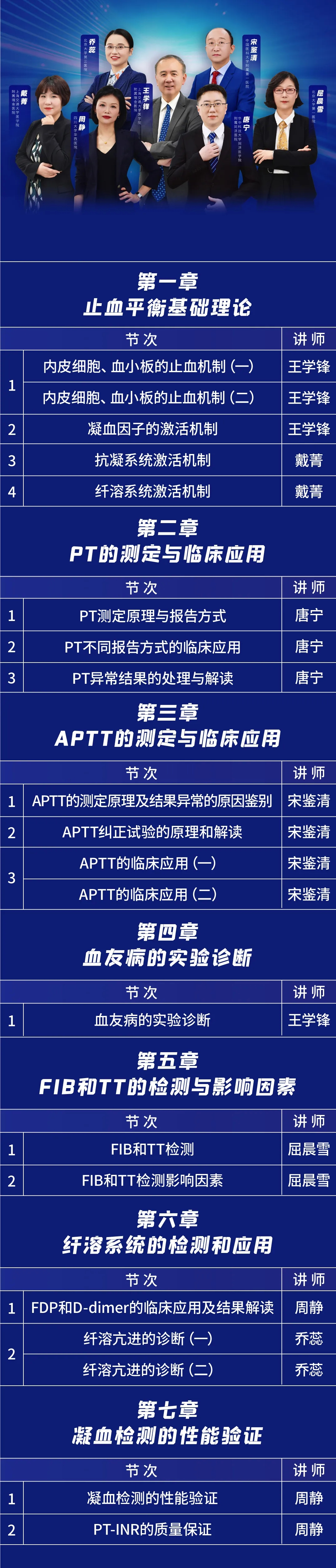 業(yè)內(nèi)**專家匯聚,帶來豐富的知識講解與精彩的案例分析。首批上線課程共7個專欄,20節(jié)課,均為血凝基本理論知識,可滿足從0到1的快速入門。凝血云課堂搭建檢驗與臨床溝通的橋梁,與您共享學術饕餮盛宴。