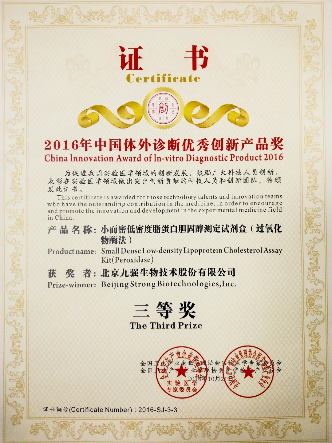 5. 獲得2016年中國體外診斷試劑創(chuàng)新產(chǎn)品獎。