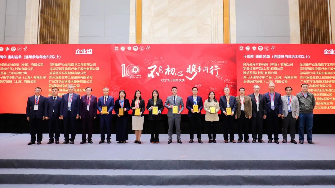 大會期間,中國醫(yī)學(xué)裝備協(xié)會檢驗醫(yī)學(xué)分會第三屆委員會第三次全體委員會議同步召開,九強生物董事長鄒左軍先生出席并上臺領(lǐng)取十周年企業(yè)感謝狀。CCLTA迎來十周年,在深耕學(xué)術(shù)、以發(fā)展為中心的精耕理念下,實現(xiàn)檢驗醫(yī)學(xué)事業(yè)的大步拓新。