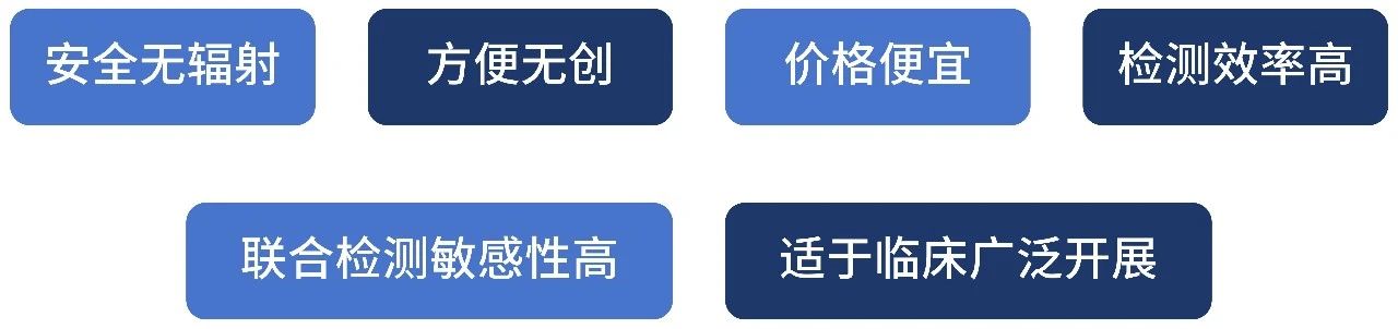 血清腫瘤標(biāo)志物檢測(cè)是迄今為止發(fā)現(xiàn)早期無癥狀腫瘤的最主要途徑之一,可先于X線、超聲、CT、MRI或PET-CT等物理檢查發(fā)現(xiàn)腫瘤,具有多方面的檢測(cè)優(yōu)勢(shì):