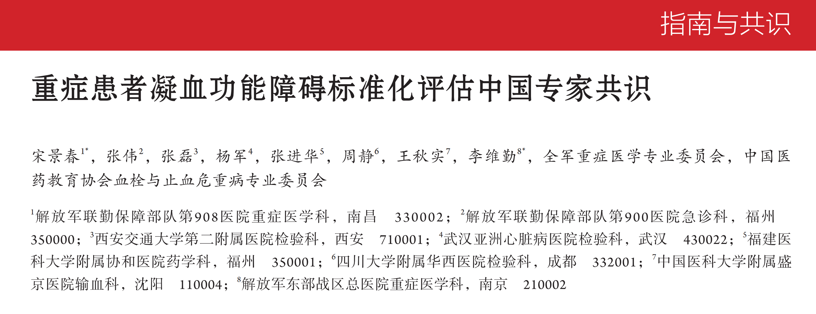 本篇文章依托《重癥患者凝血功能障礙標(biāo)準(zhǔn)化評估中國專家共識》編寫